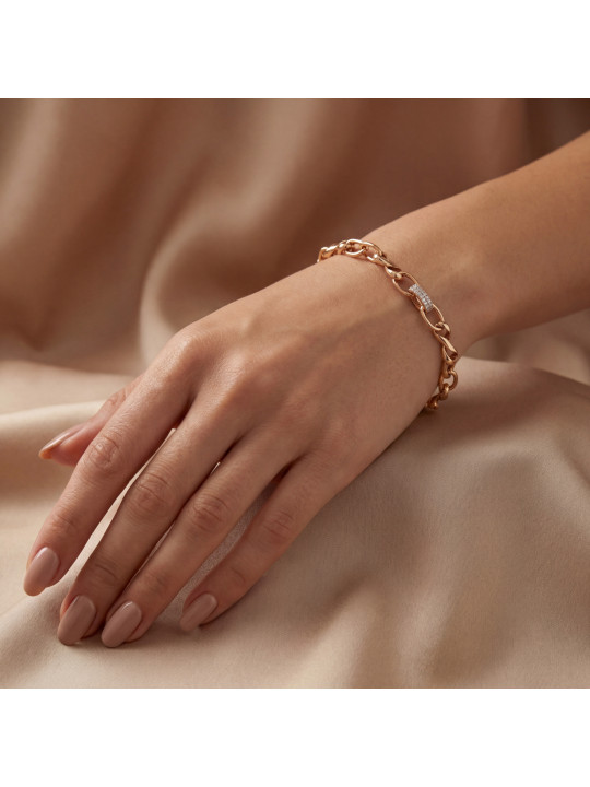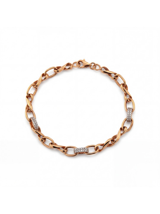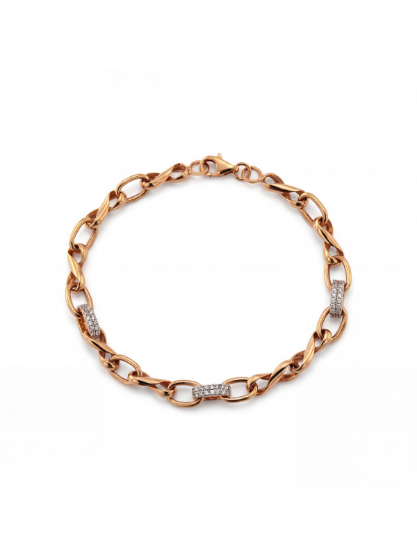 An elegant rose gold bracelet featuring modern chain links with sparkling stone-set accents. A luxurious touch for everyday wear and special occasions.