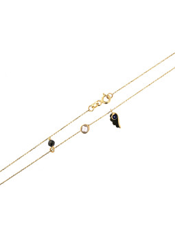 Geltono aukso grandinėlė ant kaklo su pakabuku.